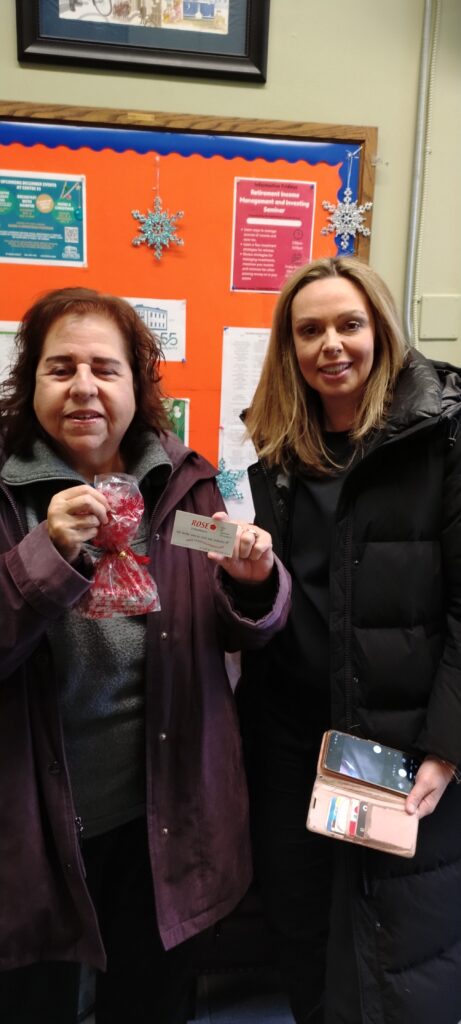 Jackie Fleming, left, presents gift cards to Jade Maitland, Program Director.